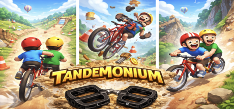 Tandemonium is a physics-based tandem bicycle party game where one or two players must coordinate pedaling and balance to race through obstacle-filled courses.